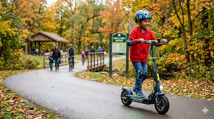 Most Canadian municipalities don’t actively enforce electric scooter regulations for children riding responsibly on pathways and quiet streets. Police focus enforcement on unsafe riding (excessive speed, busy roads, no helmet). That said, liability issues arise if your child causes an accident while technically violating bylaws. Teaching proper pathway etiquette—stay right, pass on left, announce passing, slow for pedestrians—prevents problems regardless of technical legality.